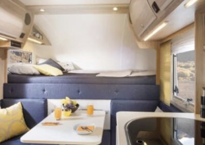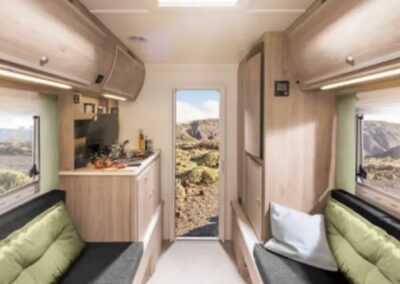 Každá kabina je postavena na robustním hliníkovém rámu a je dokonale vybavená pro nezapomenutelnou cestu po Islandu. Dispozice interiéru jsou ukázkou precizního návrhu, který zajišťuje maximální komfort i funkčnost. Ačkoli se konkrétní vnitřní provedení může lišit, vždy garantujeme odpovídající počet míst k sezení a lůžek, aby vaše dovolená na Islandu proběhla bez kompromisů v dané kategorii camperu.